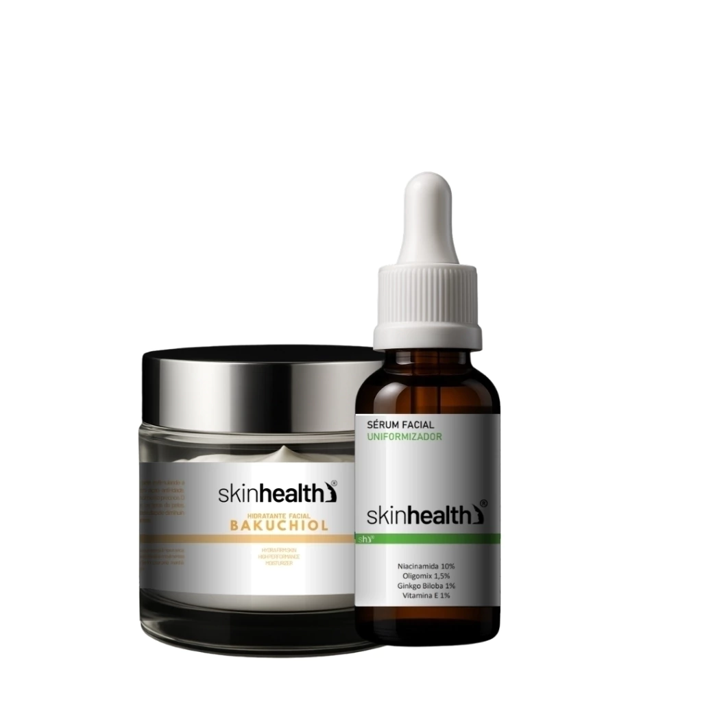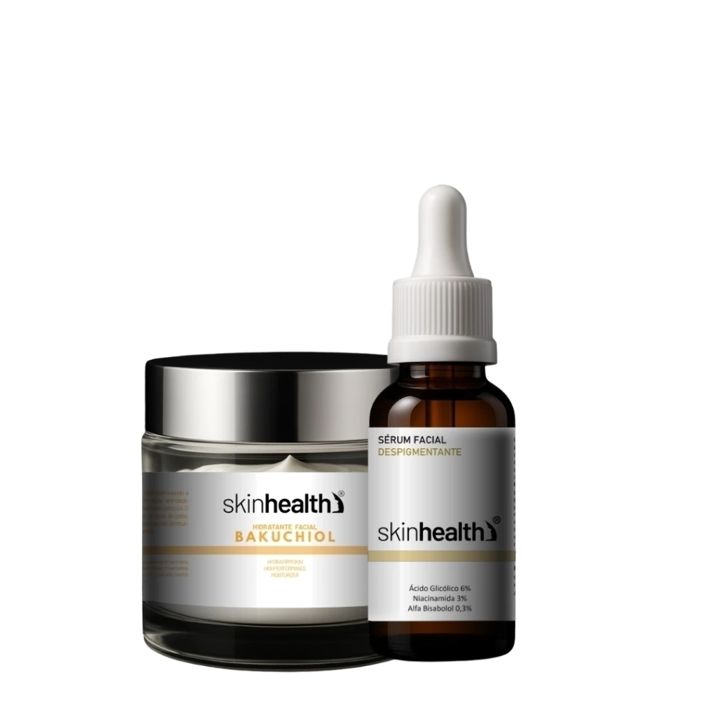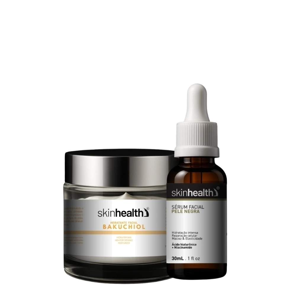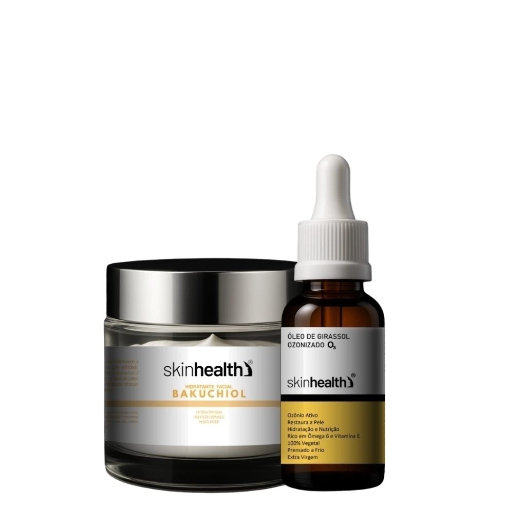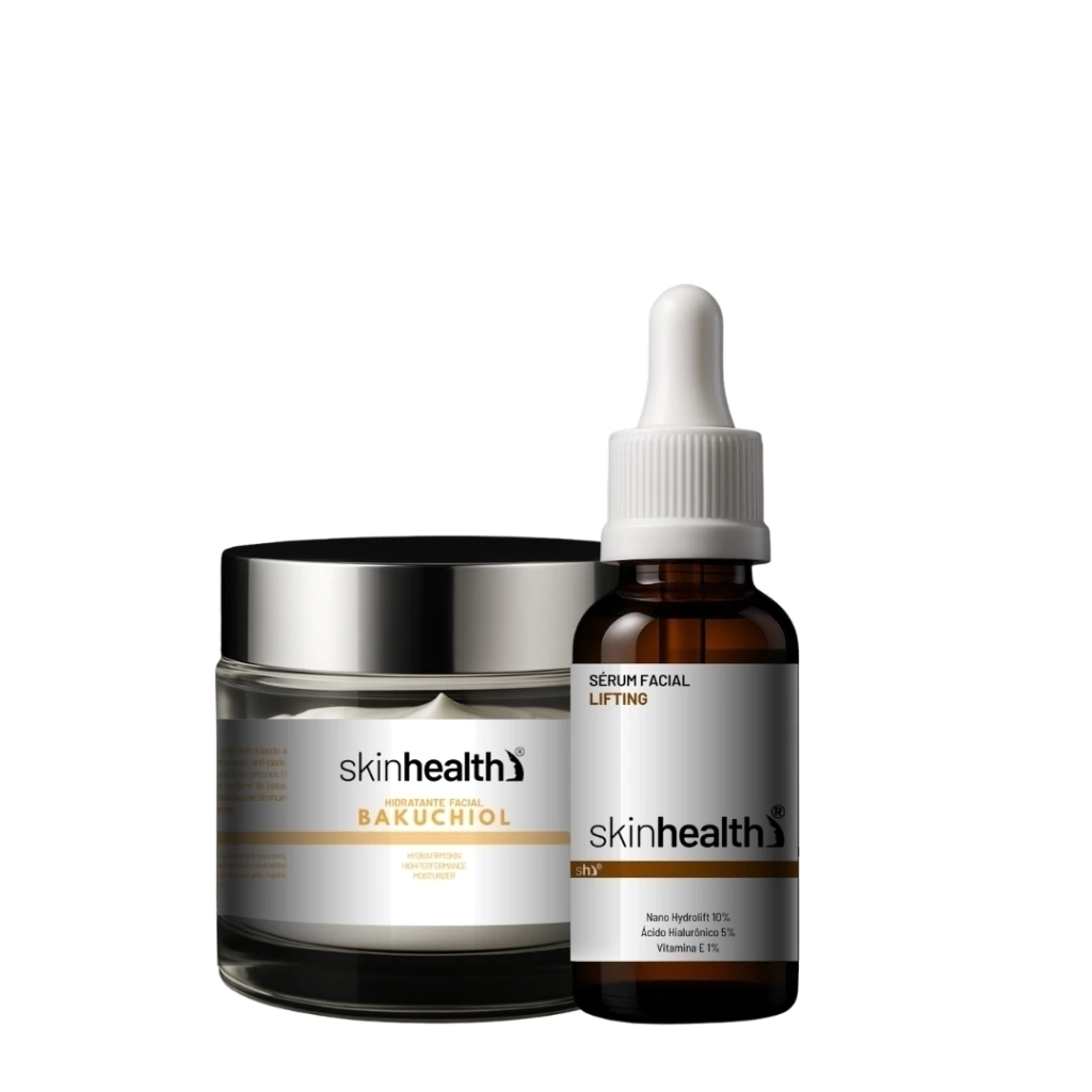 Descubra o poder do Kit Skincare Skinhealth, que combina o Creme Bakuchiol com um sérum personalizado de sua escolha, oferecendo uma rotina completa para cuidar da sua pele com eficácia e segurança.